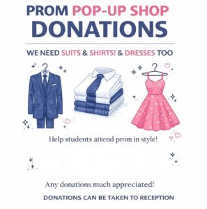 With prom season just around the corner, we’re once again preparing to support our pupils in finding outfits that make them feel confident and special. This April, we’ll be reopening our Prom Pop-Up Shop — a space where students can choose prom dresses and suits completely free of charge.
